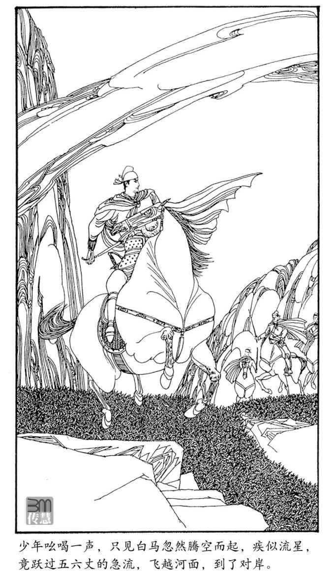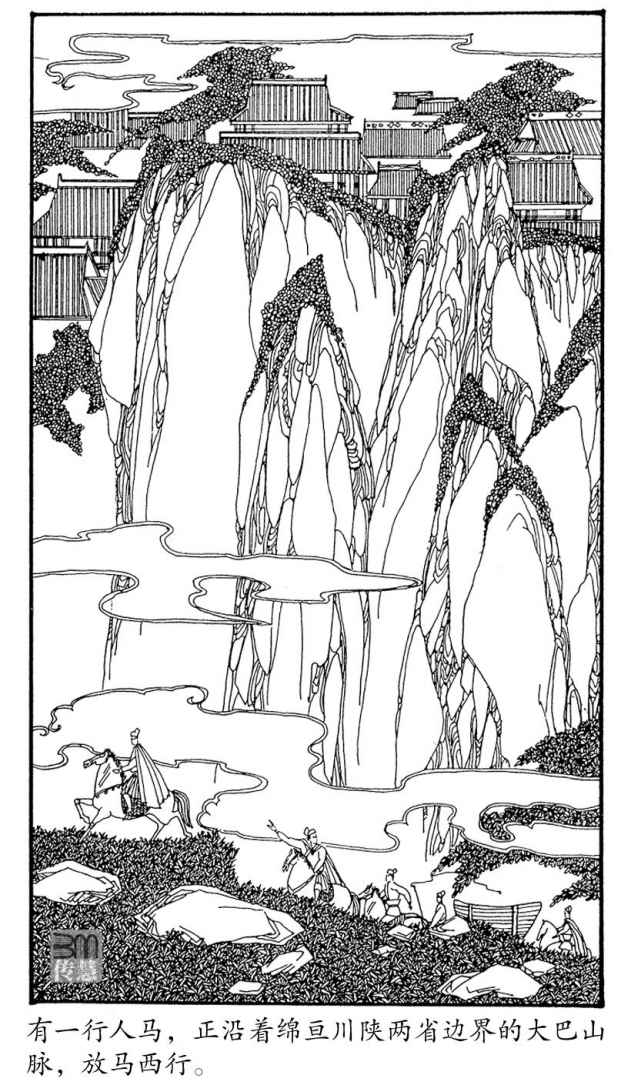 车辆马匹继续西行,黄昏时分,已将近强宁镇外的七盘关,山道狭窄,这七盘关乃川陕边界一个险要所在,它倚山面河,两岸悬砦高达百丈,下面的河水给峭壁约束成只有五六丈阔的急流,在山谷中奔腾而出,宛若万马脱缰,水花溅成浓雾。一行人走出山口,见前头半里之地,有一骑白马缓缓而行,马上人一身白色衣裳,配着白马,更显得潇洒脱俗。卓仲廉道:“这人好似一个书生,孤身无伴,好不危险。我们赶上前去与他同行如何?”耿绍南摇了摇头,猛听得一阵清脆的铃声,六七骑快马自后飞来,霎忽掠过车辆,前面那白马少年正走到狭窄的山口,老镖头惊道:“还不快让,撞上了那可要糟。”话声未了,山坳那边又是尘土大起,十余匹健马也正向这边冲来,两边马队,把少年夹在中间,眼看就要撞上,卓仲廉不禁失声惊呼,却猛听得那少年大叫一声,白马忽然腾空而起,疾似流星,竟然跃过了五六丈的急流,飞越河面,到了对岸。这两帮马队,骑术精绝,急驰之下,突然猛地勒马,两伙汇成一伙,拨过马头,拦住了前面的山口。