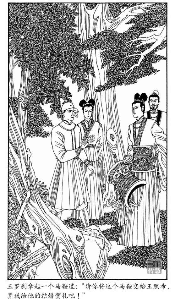 红娘子带来的女兵将金银珠宝都搬出来之后,玉罗刹对李岩一揖说道:“区区薄礼,送给贤伉俪添军饷。”李岩道:“那么我替灾民和兄弟多谢你了。”玉罗刹随手提起一个金马鞍,黯然说道:“这是你们以前的老寨主王嘉胤叫他的儿子送给我的,现在他已死了,你将这个马鞍交回给他的儿子王照希吧,算我给他的婚礼。”