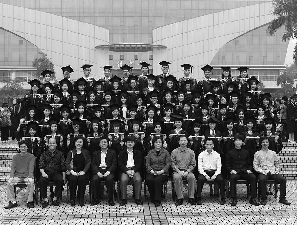 黎老师与学生拍毕业照
