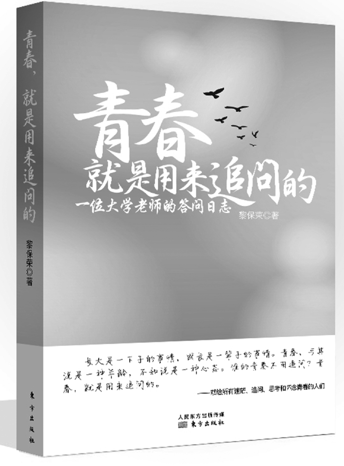 广告语即本书是国内第一本大学师生交流的日志书稿,历时三年而就,主要内容是师生之间的答问交流,问题直接或间接来自大学生,回答来自他们的老师。除此之外,本书书名、前勒口照片、广告语、封面等也是老师经过学生的投票或建议之后决定的。本书是一本真正的师生交流之书,可谓新时代的大学“论语”。本书更是一本有思想、有关怀的解惑之书,适合大学生、年轻人以及所有迷茫、追问、思考和怀念青春的人们阅读。