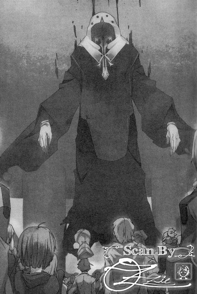 不,这么说又有点不正确。因为我们是从下面往上看,所以应该可以看到拉得非常低的帽子里的脸孔——但是那个部位没有脸孔,整个是一片空洞,甚至可以清楚看见帽子内部以及边缘的缝线部分。而下垂的长长下襬里面,也同样只是一片微微的黑暗。