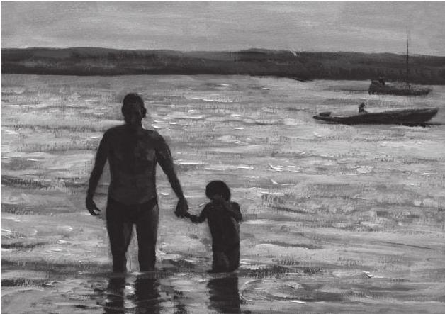 博登湖中,吉姆和坦坦打水漂,看谁的能漂得远。两个人跳下水去游,想游到对岸,但还是有点远,天都快黑了,还是老老实实回家吧。